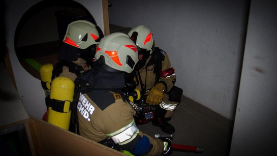 Weiters mussten die Teilnehmer bei dieser Prüfung eine Hindernisstrecke in vollkommener Dunkelheit überwinden, ähnlich wie bei einem echten Atemschutzeinsatz. Dabei galt es verschiedene Aufgaben wie Rettung einer Person, das korrekte Besteigen von Leitern, die Erkennung von Gefahrenstoffen, Umgang mit dem Digitalfunkgerät und das Löschen eines Brandes zu bewältigen.