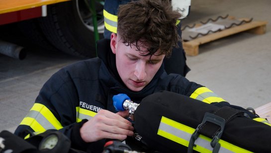 Bei dieser Prüfung rund um den Atemschutz stehen neben Theorie und Gerätekunde auch die Themen des sachgemäßen an- und ablegen von Atemschutzgeräten auf dem Plan.