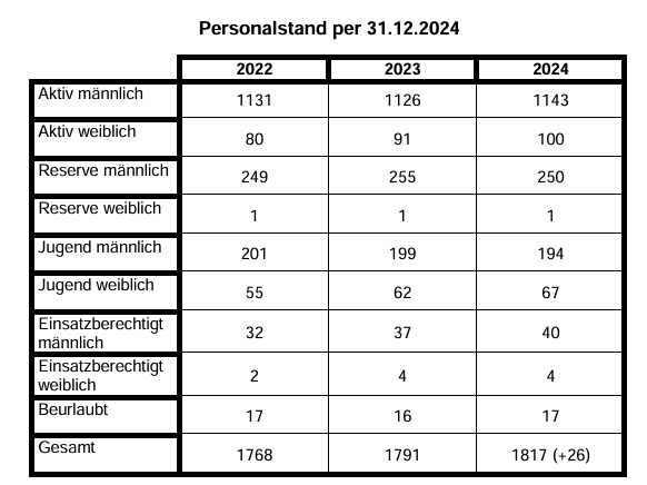 Im Jahr 2024 konnte im Bereich des Personals ein Plus von 26 Mitglieder