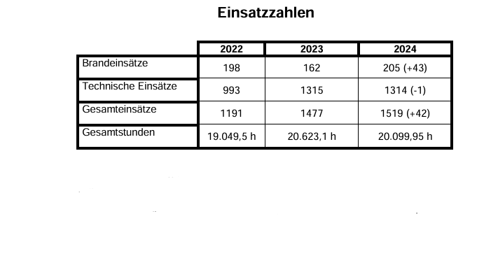 Brandeinsätzen im Gegensatz zum Jahr 2023.