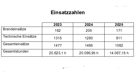 Das Jahr 2025 war in Summe ein ruhigeres Jahr als wie 2023 & 2024. Ein Minus von 403 Einsätzen. In Summe ergibt es dennoch rund 3 Einsätze am Tag in unserem Bezirk. Die Stützpunktfeuerwehren des Bezirkes standen ebenso mehrmals im Einsatz. Mehr dazu im Unterpunkt Stützpunkte.