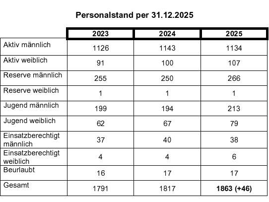 Im Jahr 2025 konnte im Bereich des Personals ein Plus von 46 Mitglieder verzeichnet werden.