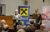 Bezirks-Feuerwehrkommandant OBR Thomas Pichler nutzte die Veranstaltung zudem, um die neuen Regenschutzjacken für Funktionäre des Bezirks- und Abschnittsfeuerwehrkommandos symbolisch zu überreichen.